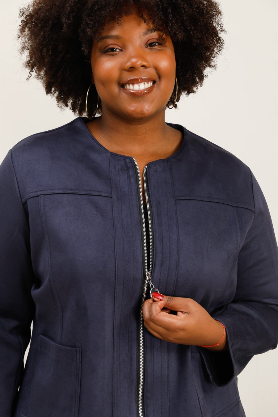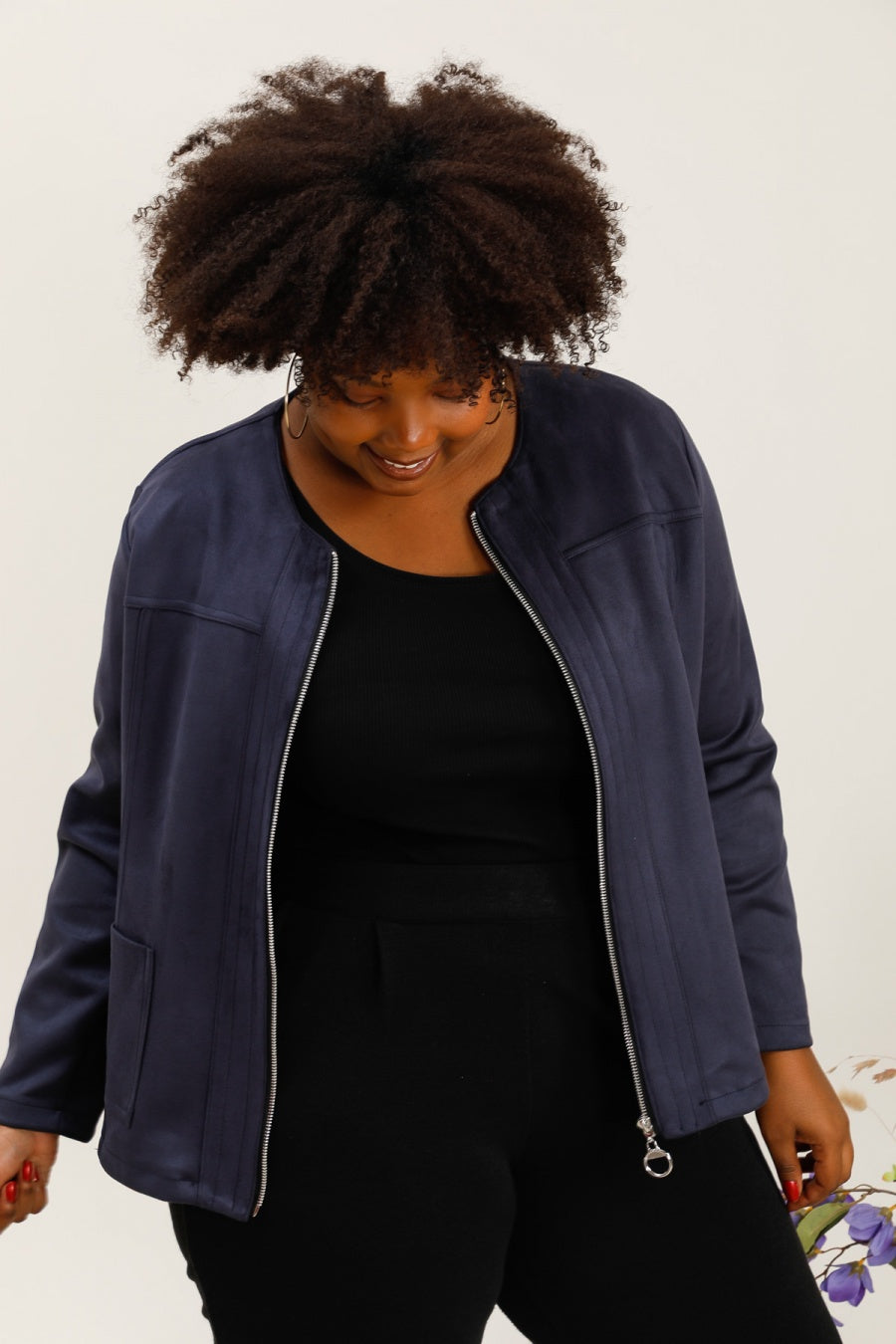 Giacca Sfiancata in Tessuto Scamosciato con Zip